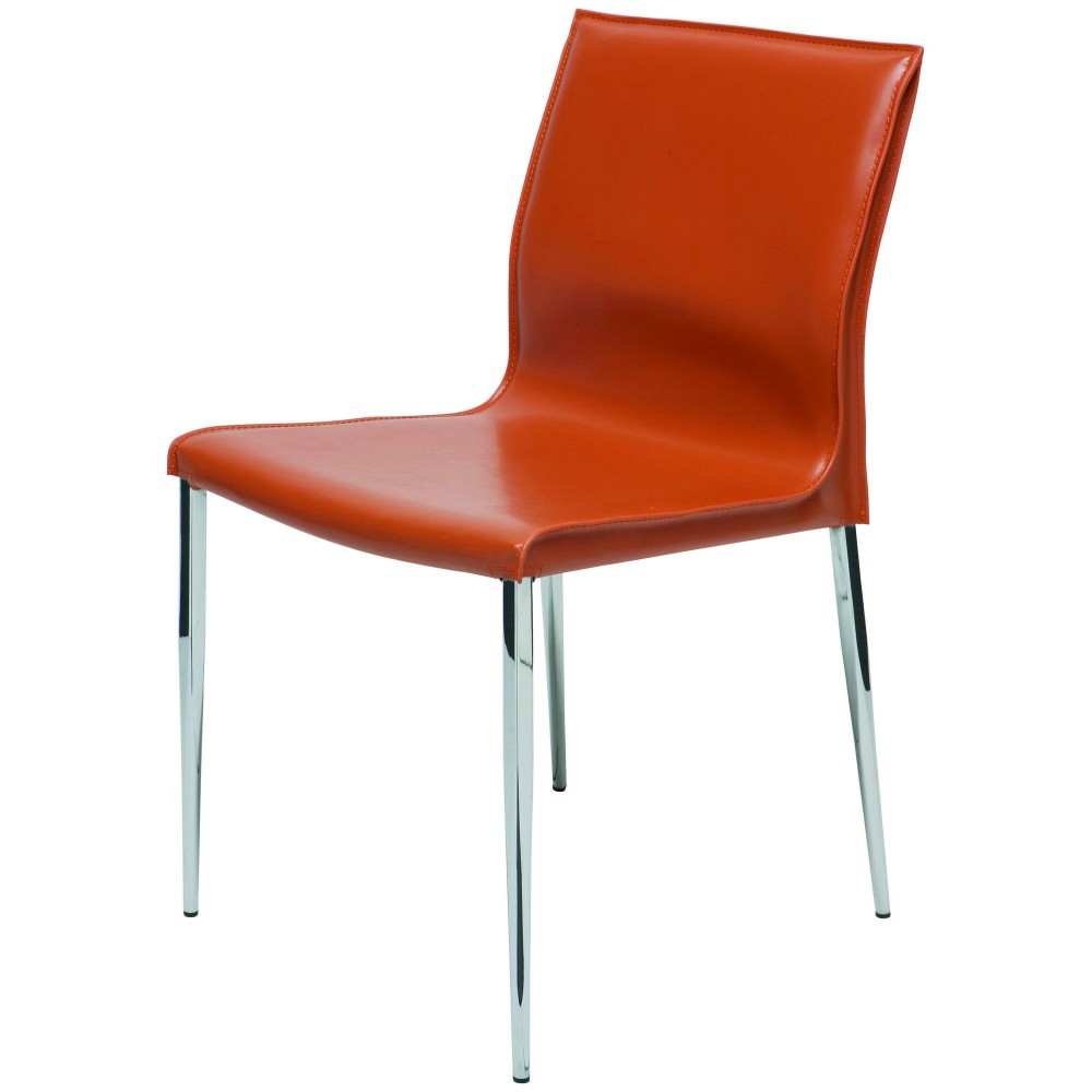 The Colter dining chair is understated Italian contemporary design at its best. A beautifully crafted leather tone-on-tone stitch upholstery seat is paired with a high polished stainless steel frame for a chic, refined look appropriate for any elegant space.