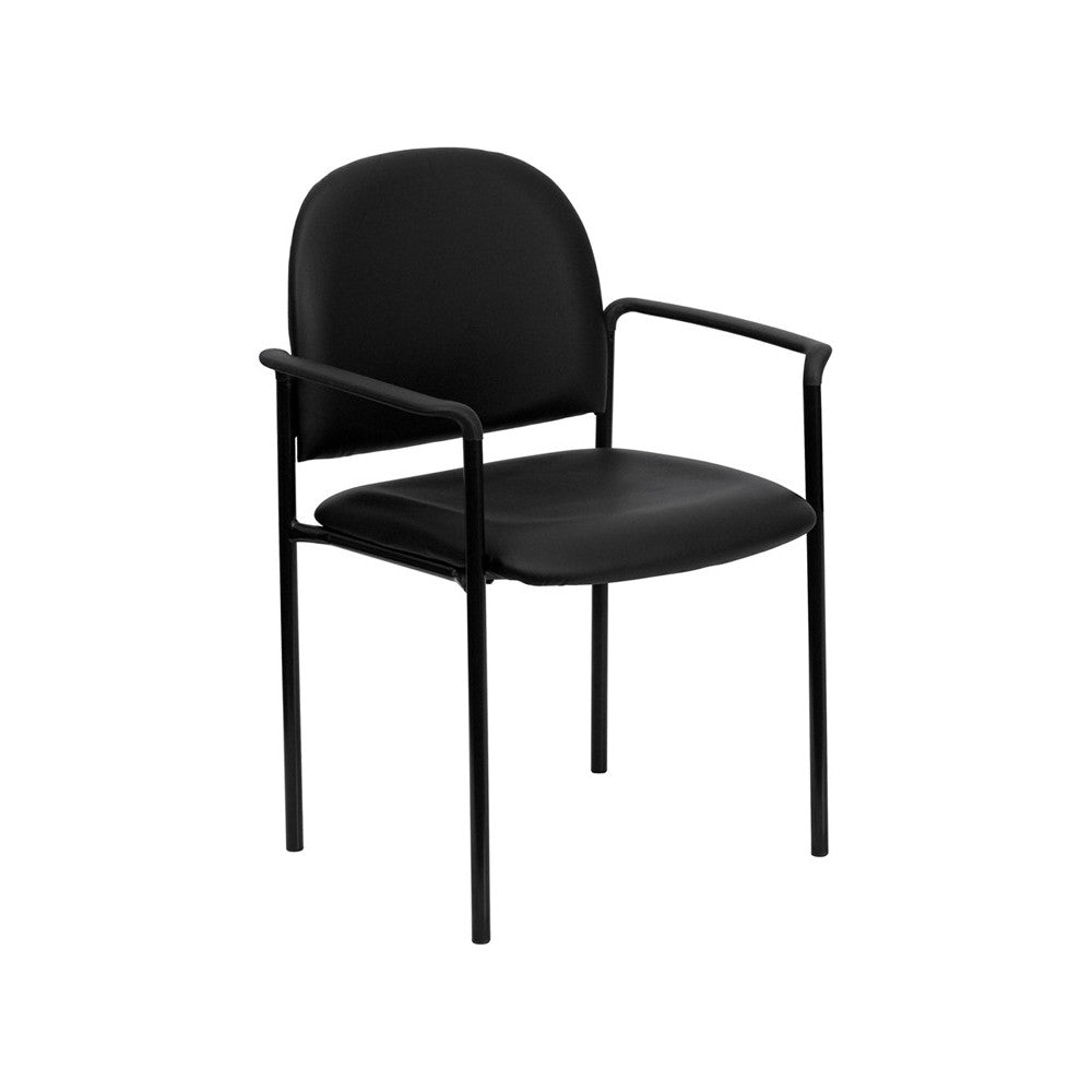 Comfort Black Vinyl Stackable Steel Side Reception Chair with Arms