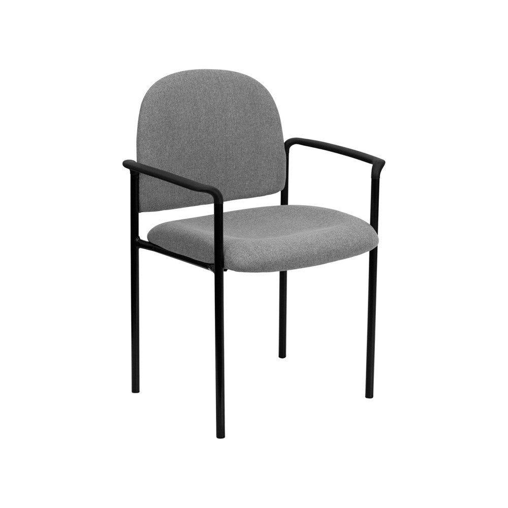 Comfort Gray Fabric Stackable Steel Side Reception Chair with Arms