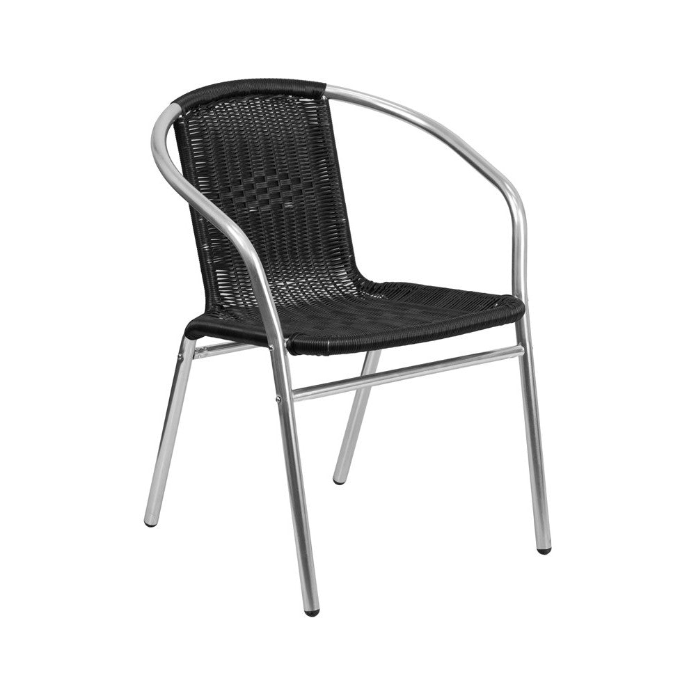 Commercial Aluminum and Black Rattan Indoor-Outdoor Restaurant Stack Chair