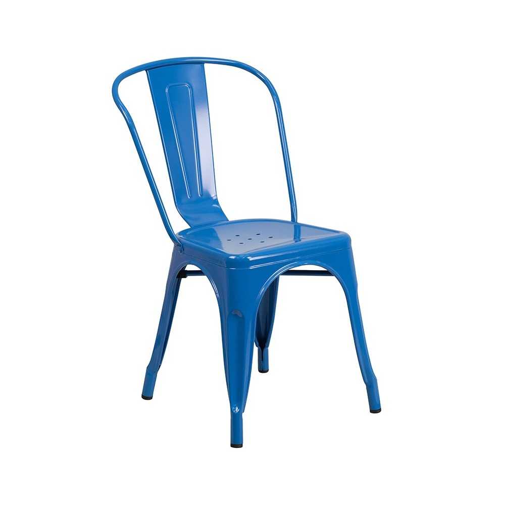 Don't let this popular colorful metal table set pass you by as it rises in the ranks of popularity. You'll be pleasantly surprised how cool this kitchen table set looks in your home and the compliments that will follow. What's even better is that this table set can be enjoyed outdoors thanks to the weather-resistant powder coated frame. For longevity, care should be taken to protect from long periods of wet weather. Add this trend-setting metal table set to your dining room or kitchen to enjoy meals with the family. The glossy metal dining table is highlighted by an attractive imprint while the brace adds extra stability for heavy-use commercial settings. The outdoor stacking chairs include bumper guards to protect the finish while stacked and drain holes to prevent pooling in the center of the seat. These colorful dining table sets are starting to make an appearance everywhere that lets you know that they'll be around for a while. Don't let the stresses of your upcoming Grand Opening get to you by purchasing this 3-piece metal dining table set backed by durable galvanized steel construction. [CH-31330-2-30-BL-GG]