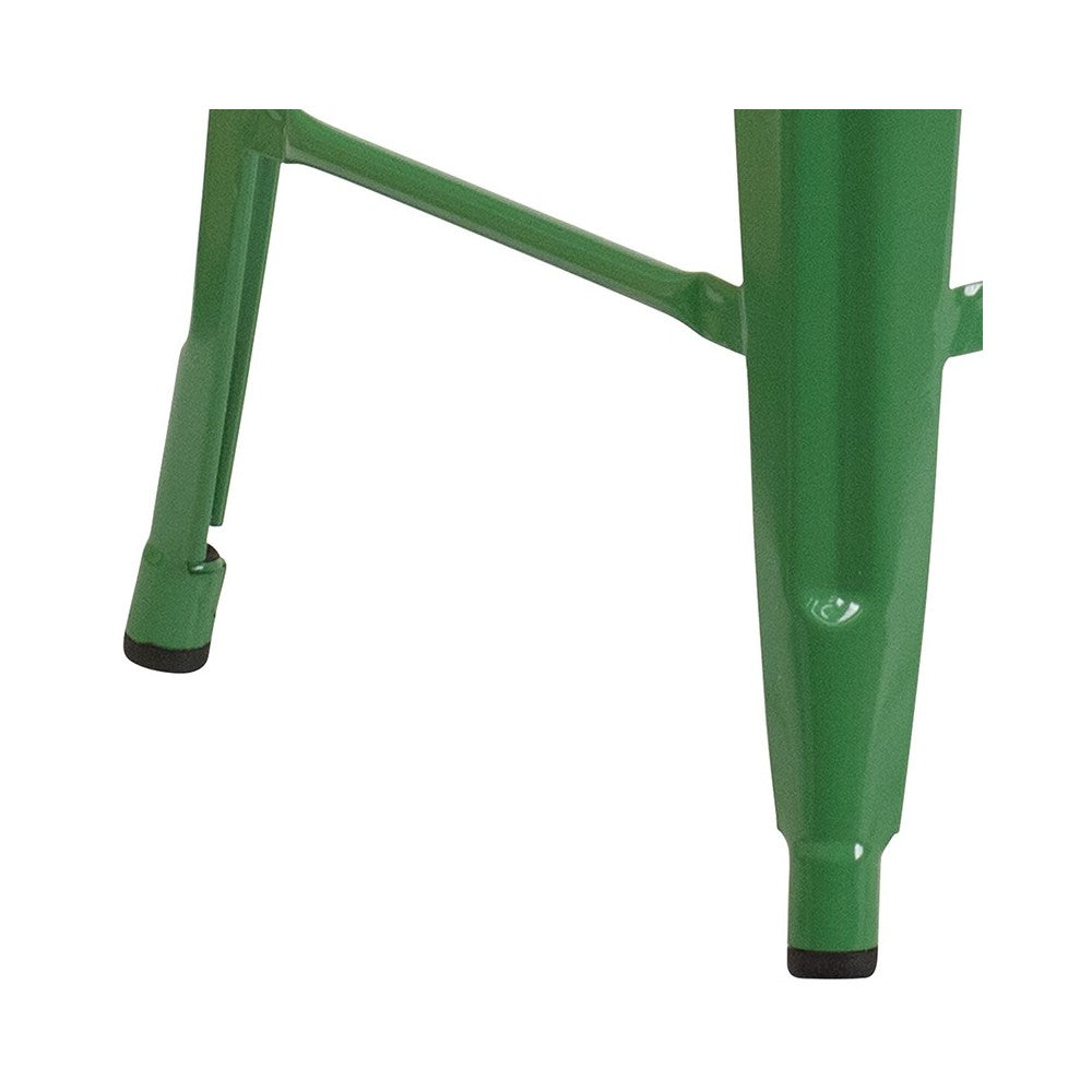 Commercial Grade 24" High Backless Green Metal Indoor-Outdoor Counter Height Stool with Square Seat