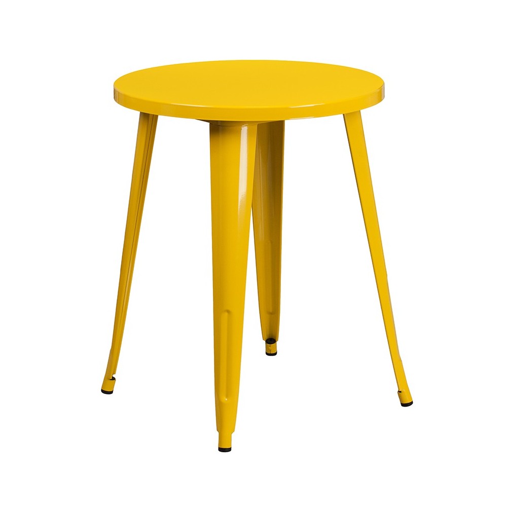 Commercial Grade 24" Round Yellow Metal Indoor-Outdoor Table Set with 4 Vertical Slat Back Chairs