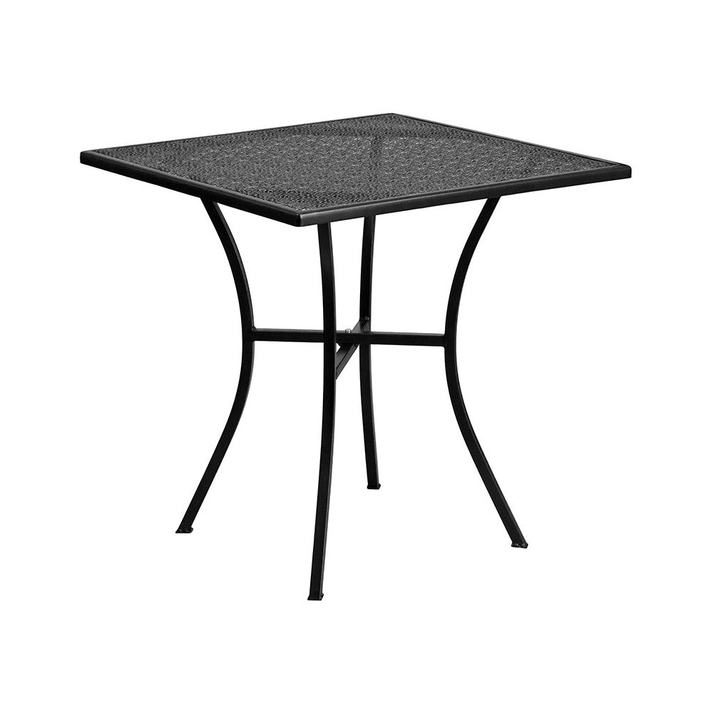 Commercial Grade 28" Square Black Indoor-Outdoor Steel Patio Table Set with 2 Round Back Chairs