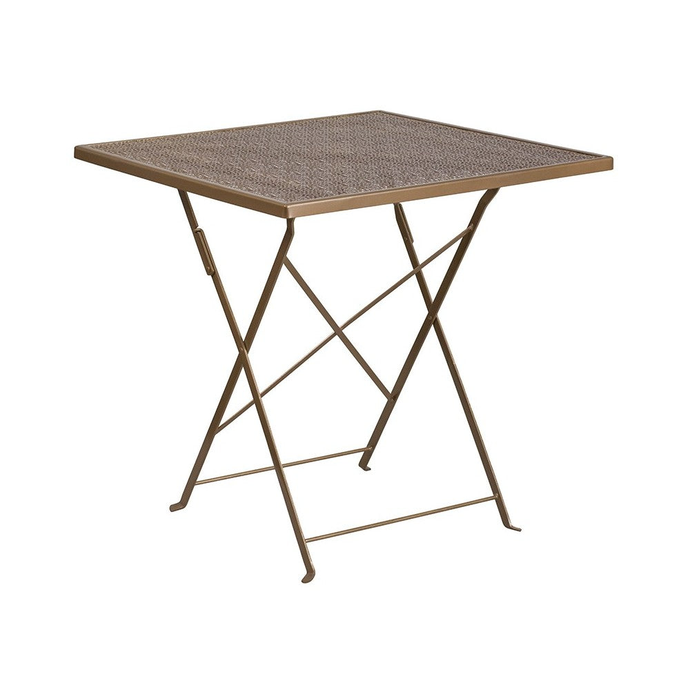 Commercial Grade 28" Square Gold Indoor-Outdoor Steel Folding Patio Table Set with 2 Square Back Chairs