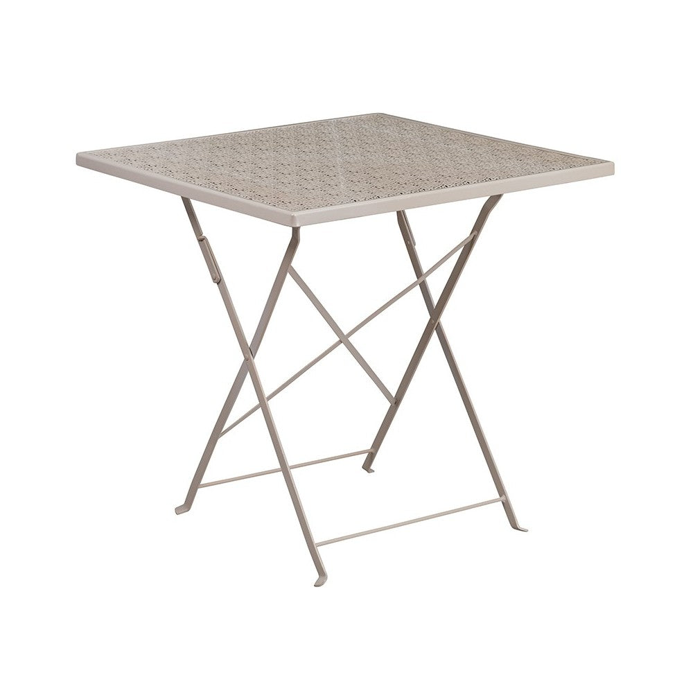 Commercial Grade 28" Square Light Gray Indoor-Outdoor Steel Folding Patio Table Set with 4 Square Back Chairs