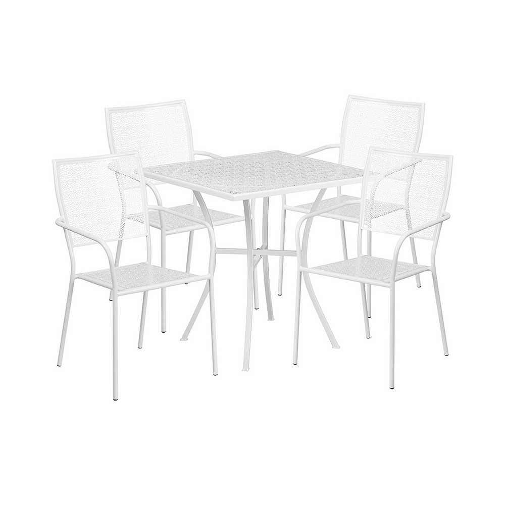 Commercial Grade 28" Square White Indoor-Outdoor Steel Patio Table Set with 4 Square Back Chairs