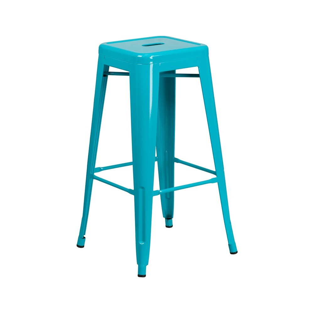 Commercial Grade 30" High Backless Crystal Teal-Blue Indoor-Outdoor Barstool