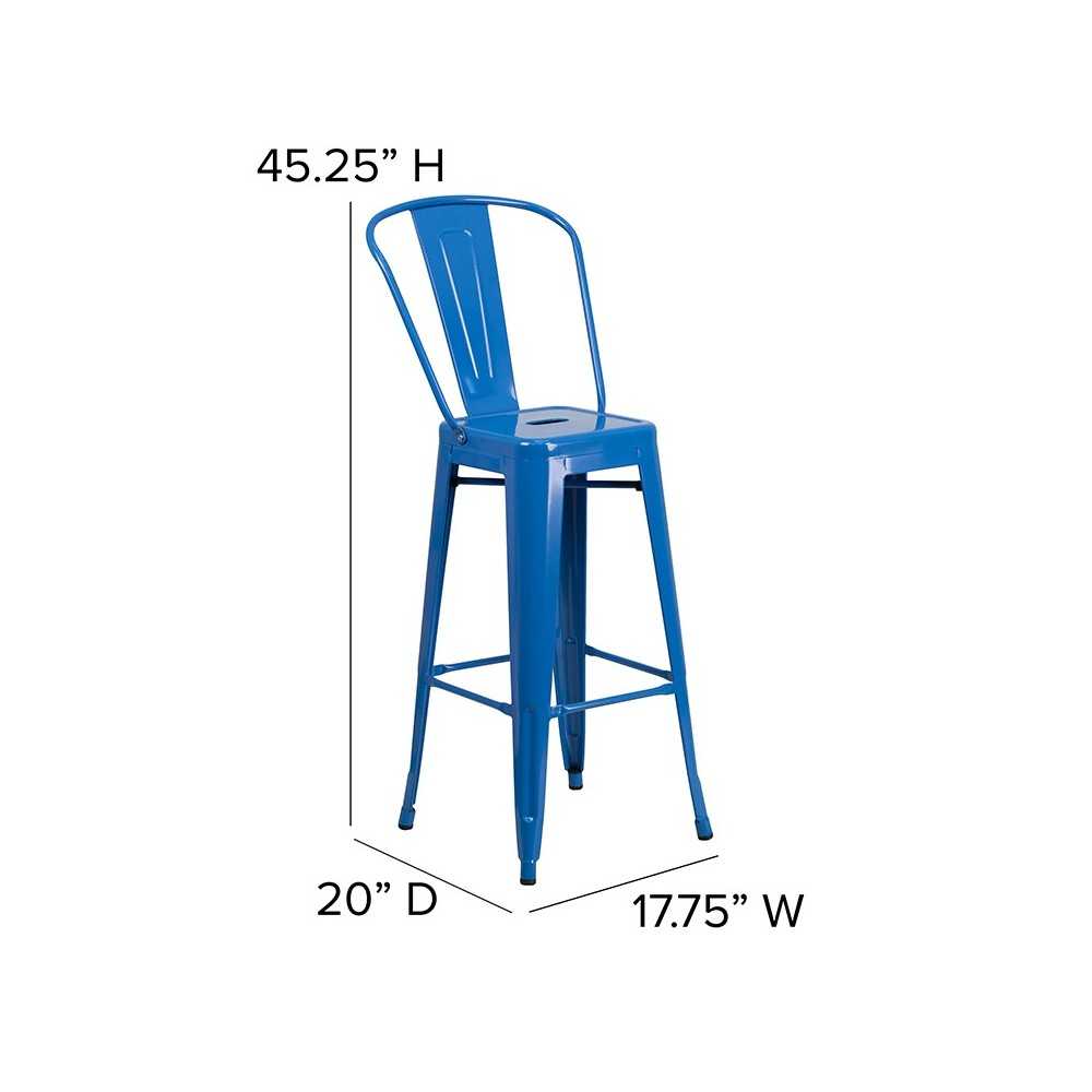 Commercial Grade 30" High Blue Metal Indoor-Outdoor Barstool with Removable Back