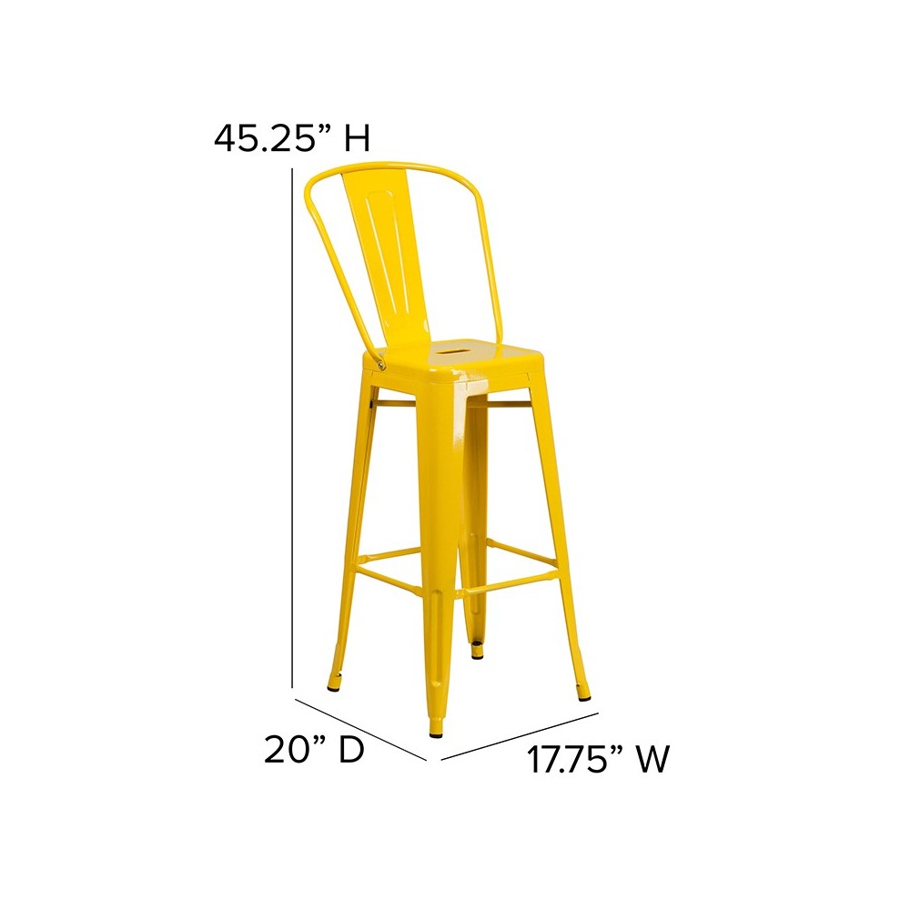 Commercial Grade 30" High Yellow Metal Indoor-Outdoor Barstool with Removable Back