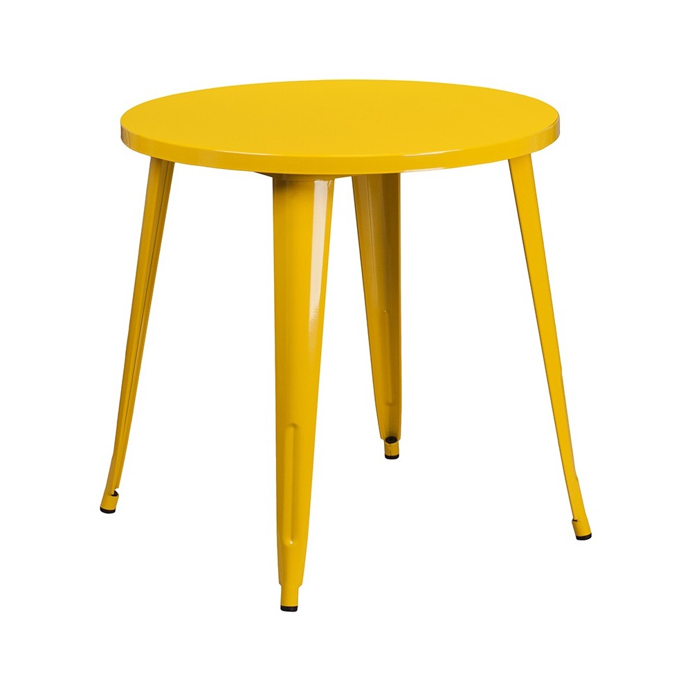 Commercial Grade 30" Round Yellow Metal Indoor-Outdoor Table Set with 4 Vertical Slat Back Chairs