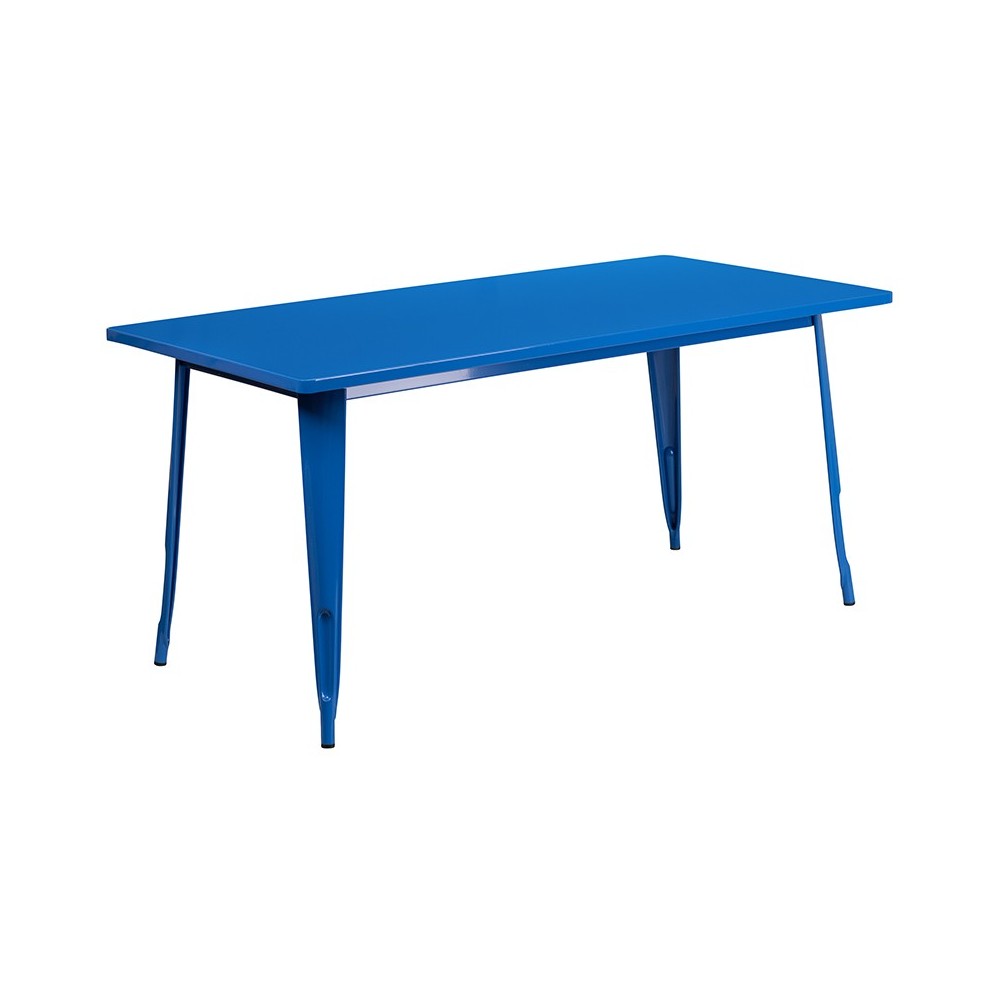 Commercial Grade 31.5" x 63" Rectangular Blue Metal Indoor-Outdoor Table Set with 6 Stack Chairs