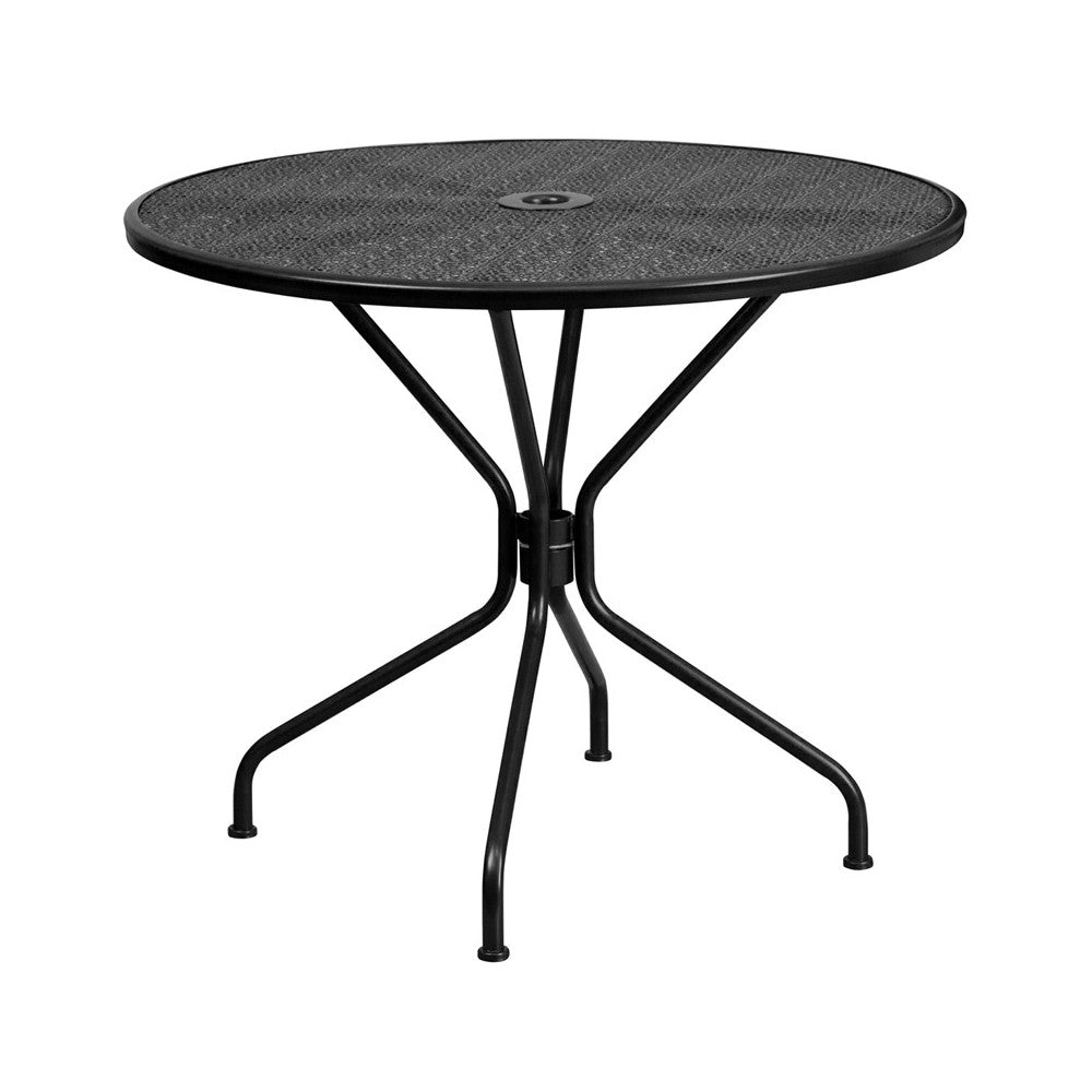 Commercial Grade 35.25" Round Black Indoor-Outdoor Steel Patio Table