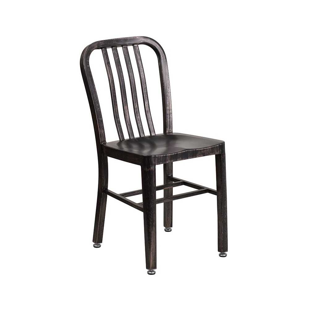 Create a warm and inviting space in your restaurant, cafe, coffee shop, ice cream parlor, smoothie or juice bar with this colorful metal dining chair. The distressed antique-black gold chair combines industrial and modern style well to accent any space in your home or business. These dining side chairs are heavy-duty to withstand regular use in the hospitality and restaurant business while also designed for comfort. Inspire potential renters and homeowners with a fully furnished home for them to envision living there, the best part about these colorful chairs are that they can be used indoors and outdoors. Add color to your backyard by using these colorful patio chairs to your deck or patio. For longevity, care should be taken to protect from long periods of wet weather. Pair these kitchen chairs with our matching antique-black gold counter height stools and bar stools to have seating at your dining table, kitchen island and home bar. Coordinate the seating in your restaurant with the same style of seating at your bar and restaurant tables. With prominent features and a powder coated galvanized steel construction this metal dining chair will give you lasting use for years to come. [CH-61200-18-BQ-GG]