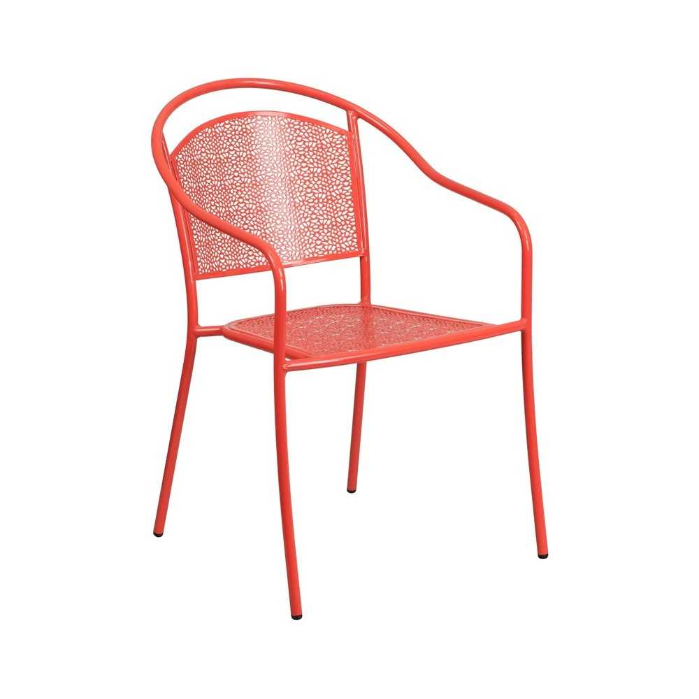 Commercial Grade Coral Indoor-Outdoor Steel Patio Arm Chair with Round Back