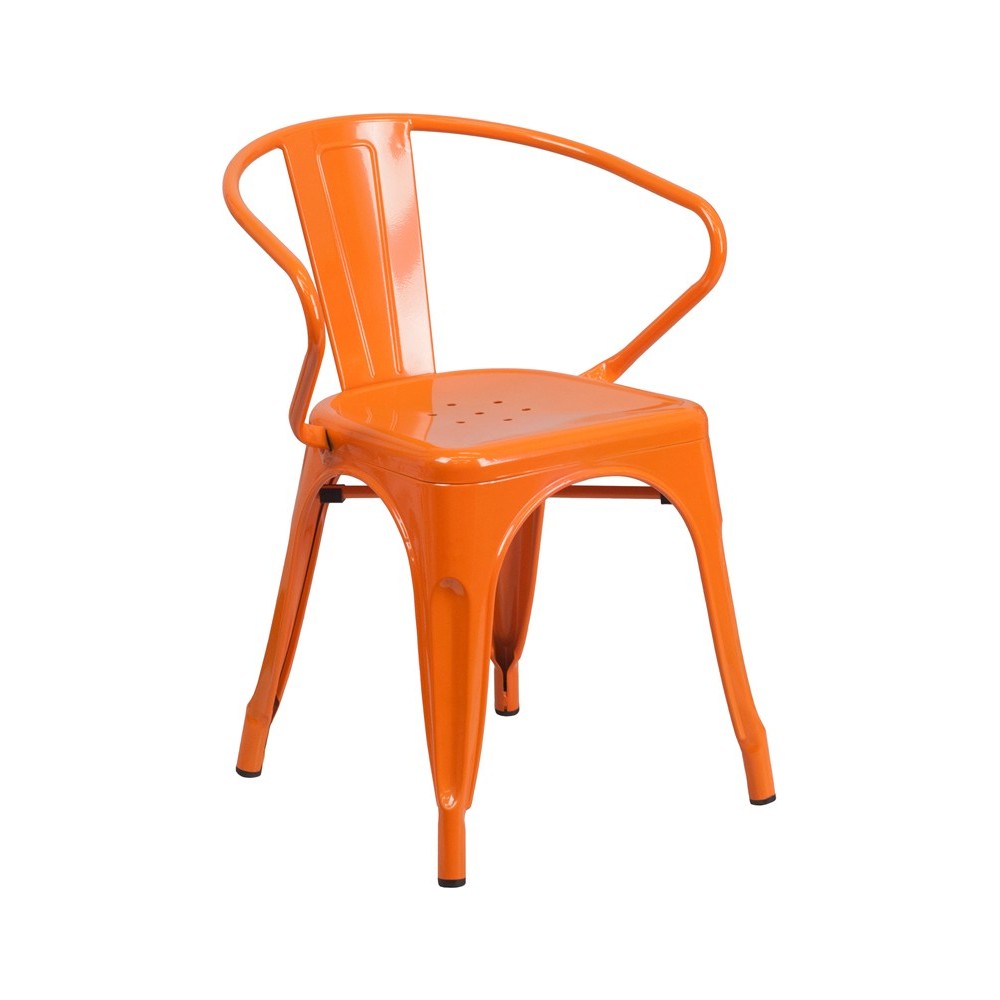 Commercial Grade Orange Metal Indoor-Outdoor Chair with Arms