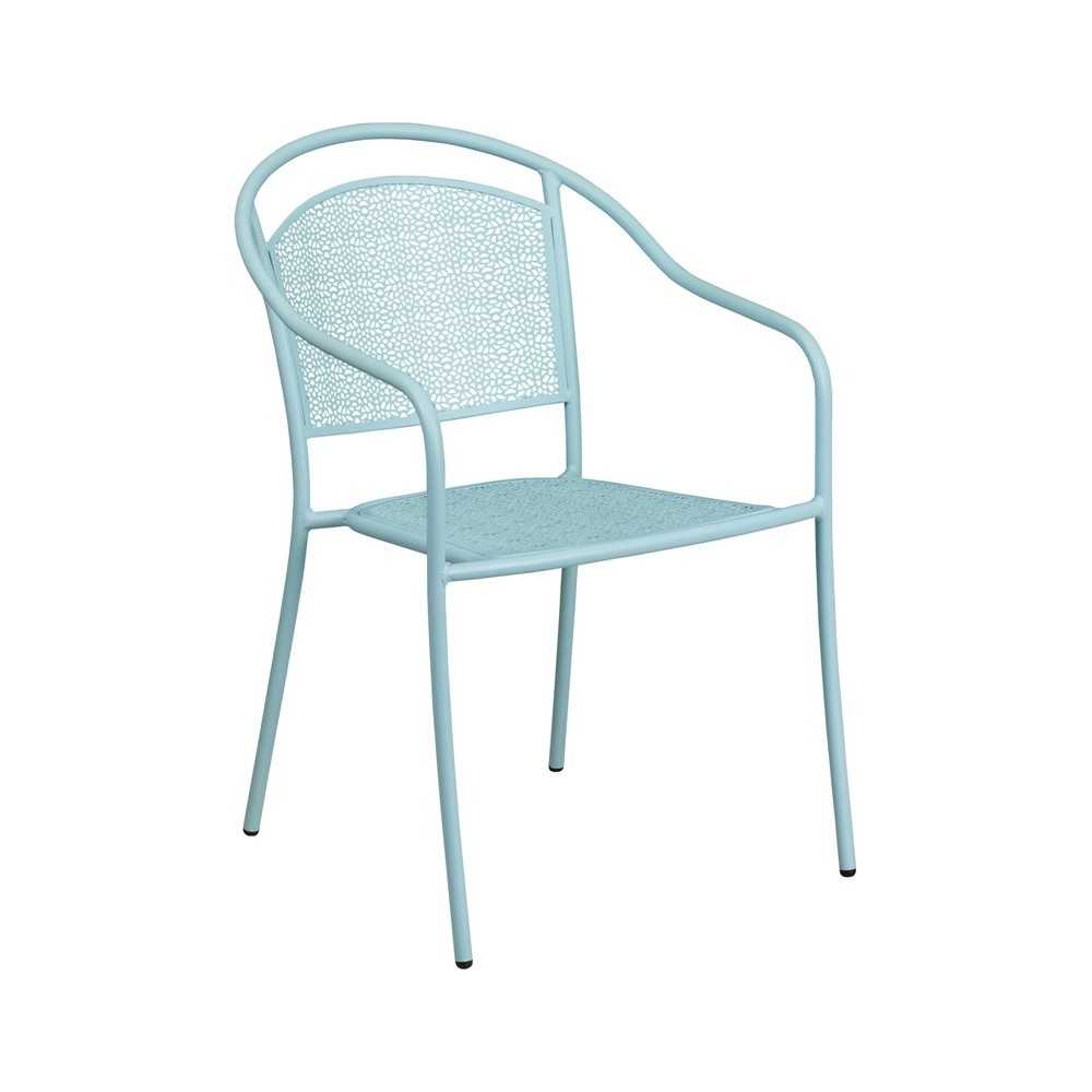 Commercial Grade Sky Blue Indoor-Outdoor Steel Patio Arm Chair with Round Back