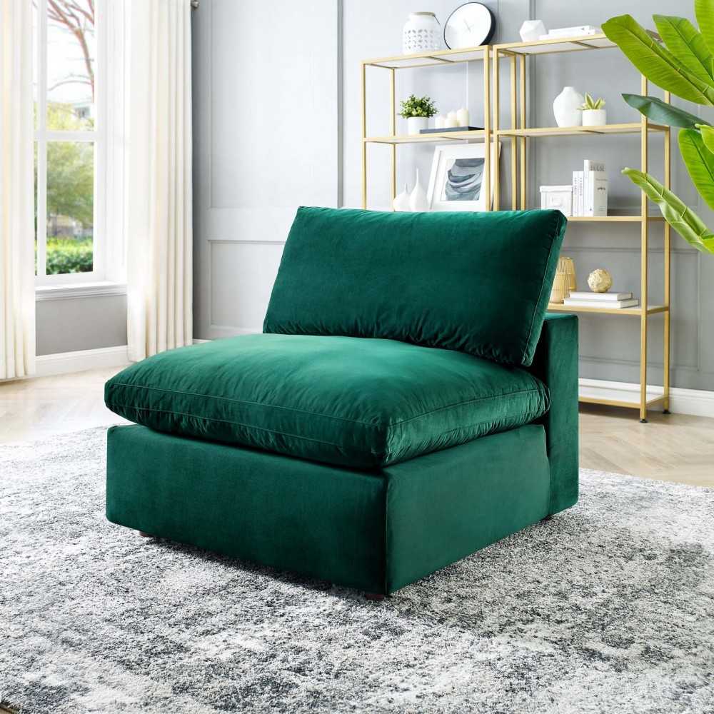 Commix Down Filled Overstuffed Performance Velvet Armless Chair, Green