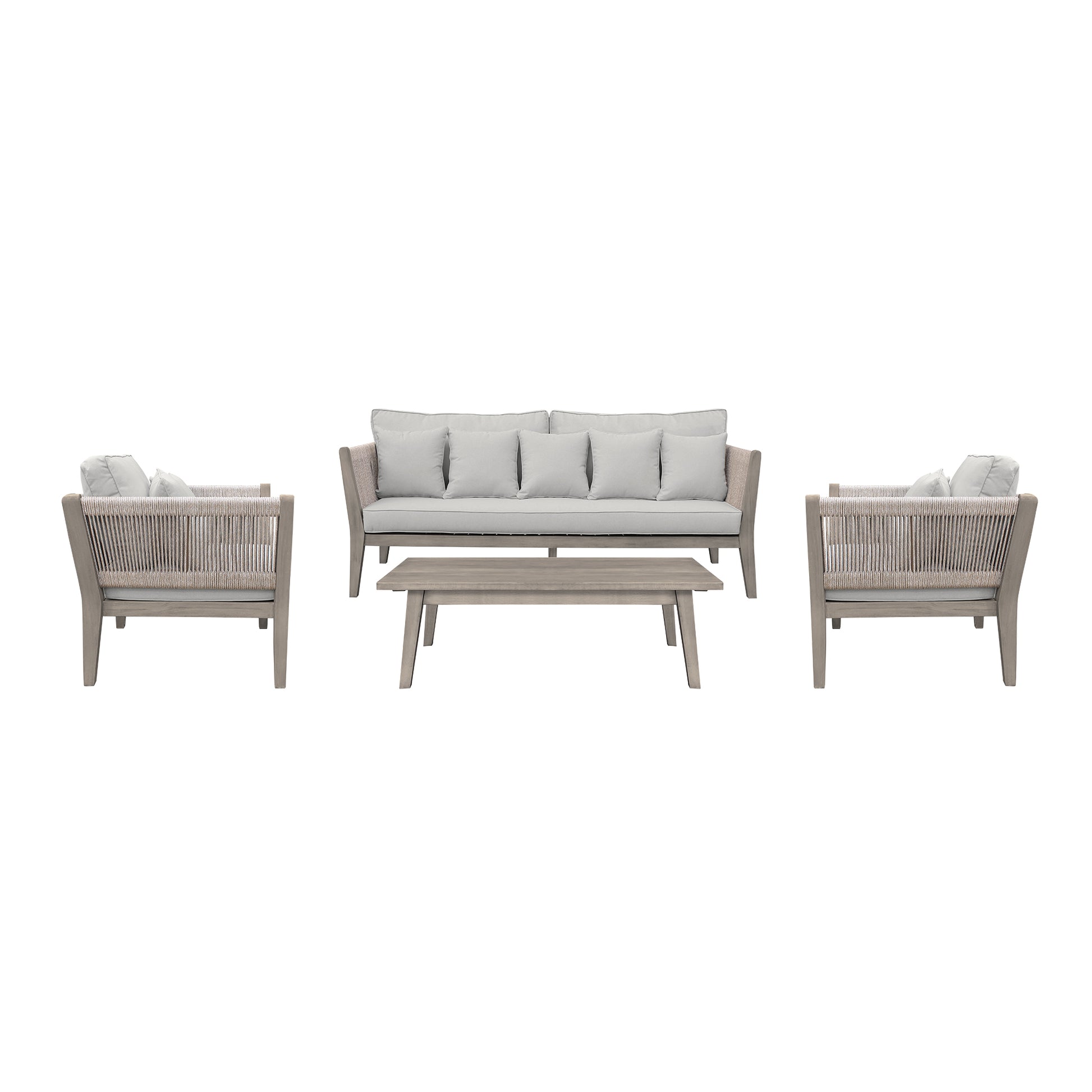 Condesa 4 Piece Patio Furniture Set in Acacia Wood and Rope with Grey Cushions