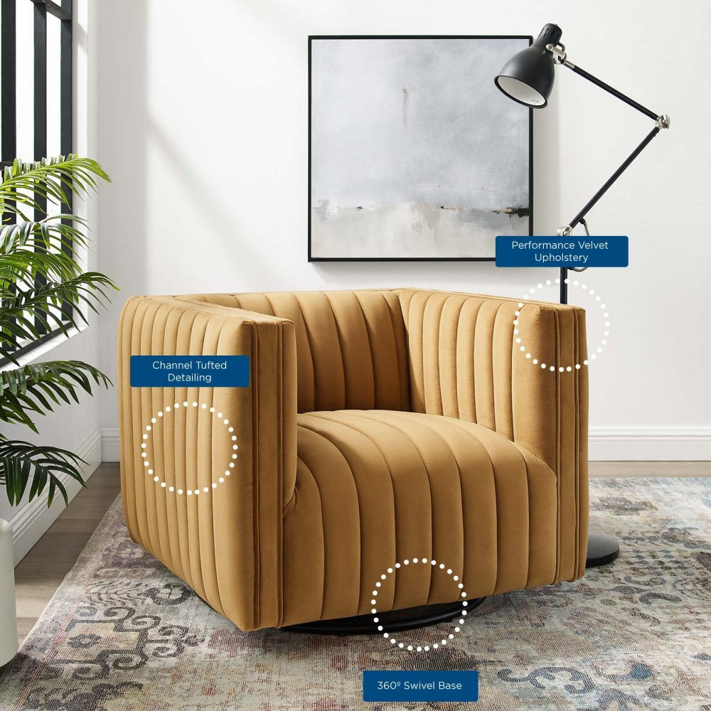 Conjure Channel Tufted Performance Velvet Swivel Armchair, Cognac