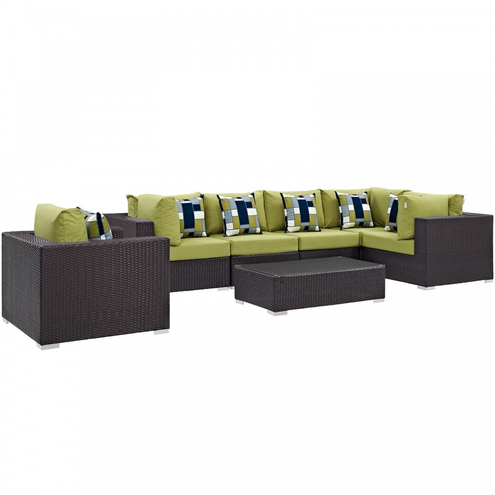 Convene 7 Piece Outdoor Patio Sectional Set, Espresso Peridot, EEI-2350-EXP-PER-SET