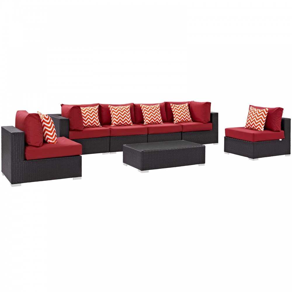Convene 7 Piece Outdoor Patio Sectional Set, Espresso Red, EEI-2357-EXP-RED-SET