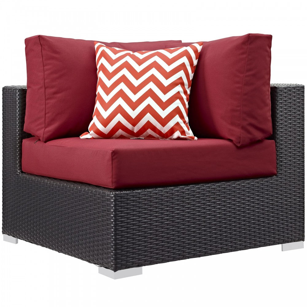 Convene 8 Piece Outdoor Patio Sectional Set, Espresso Red, EEI-2368-EXP-RED-SET