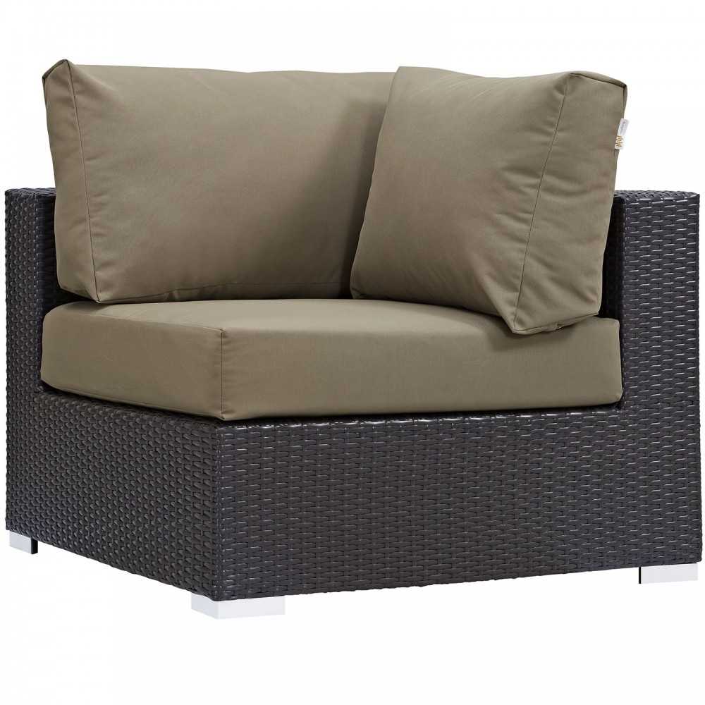Gather stages of sensitivity with the Convene Outdoor Sectional series. Made with a synthetic rattan weave and a powder-coated aluminum frame, Convene is a versatile outdoor furniture set that shifts and combines according to the spontaneous needs of the moment. Outfitted with all-weather fabric cushions, leave a positive impression on friends and family while enhancing your patio, backyard, or poolside repast in this series of palpable distinction. This installment of the series is an Outdoor Patio Sectional Sofa Set.