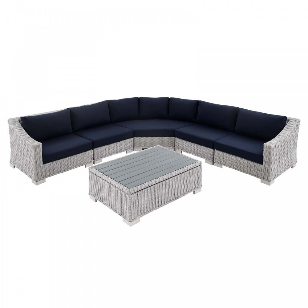 Conway Sunbrella Outdoor Patio Wicker Rattan 6-Piece Sectional Sofa Set, Light Gray Navy