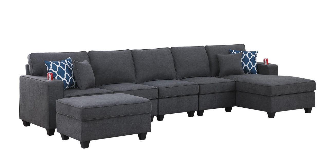 Cooper Stone Gray Woven 6Pc Sectional Sofa Chaise, Ottoman, Cupholder, 89133-7B