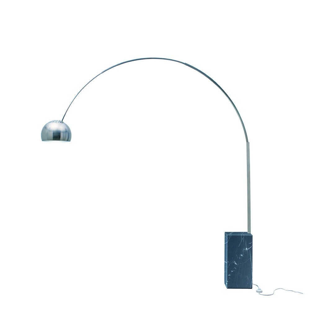 The sweeping arc of the Cora floor lamp celebrates classic modernism. An impressive rectangular base in solid marble Anchors the Cora. But the Cora's inspired curved shaft and rounded shade in brushed stainless steel defines the piece providing broad reach illumination and arresting style. The Cora includes a 154lbs marble base in black or white veined marble, a stainless steel frame and an inline on/off floor switch for ease and convenience. Each piece of marble is expertly crafted out of a unique piece of natural stone, creating beautiful variations and one-of-a-kind details.
