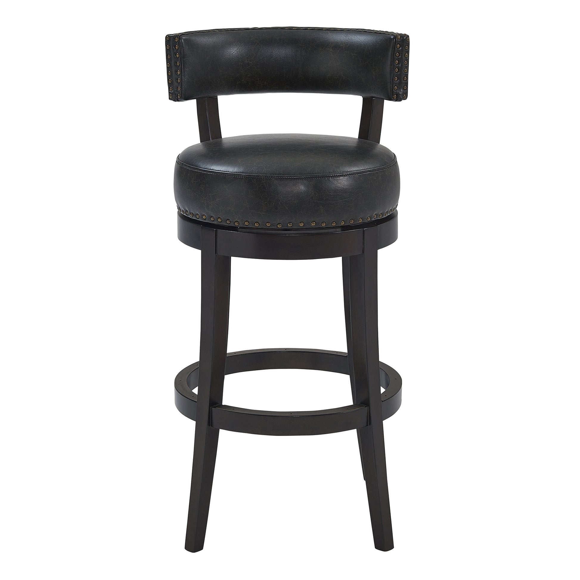 Corbin 30" Bar Height Swivel Onyx Faux Leather and Espresso Wood Bar Stool