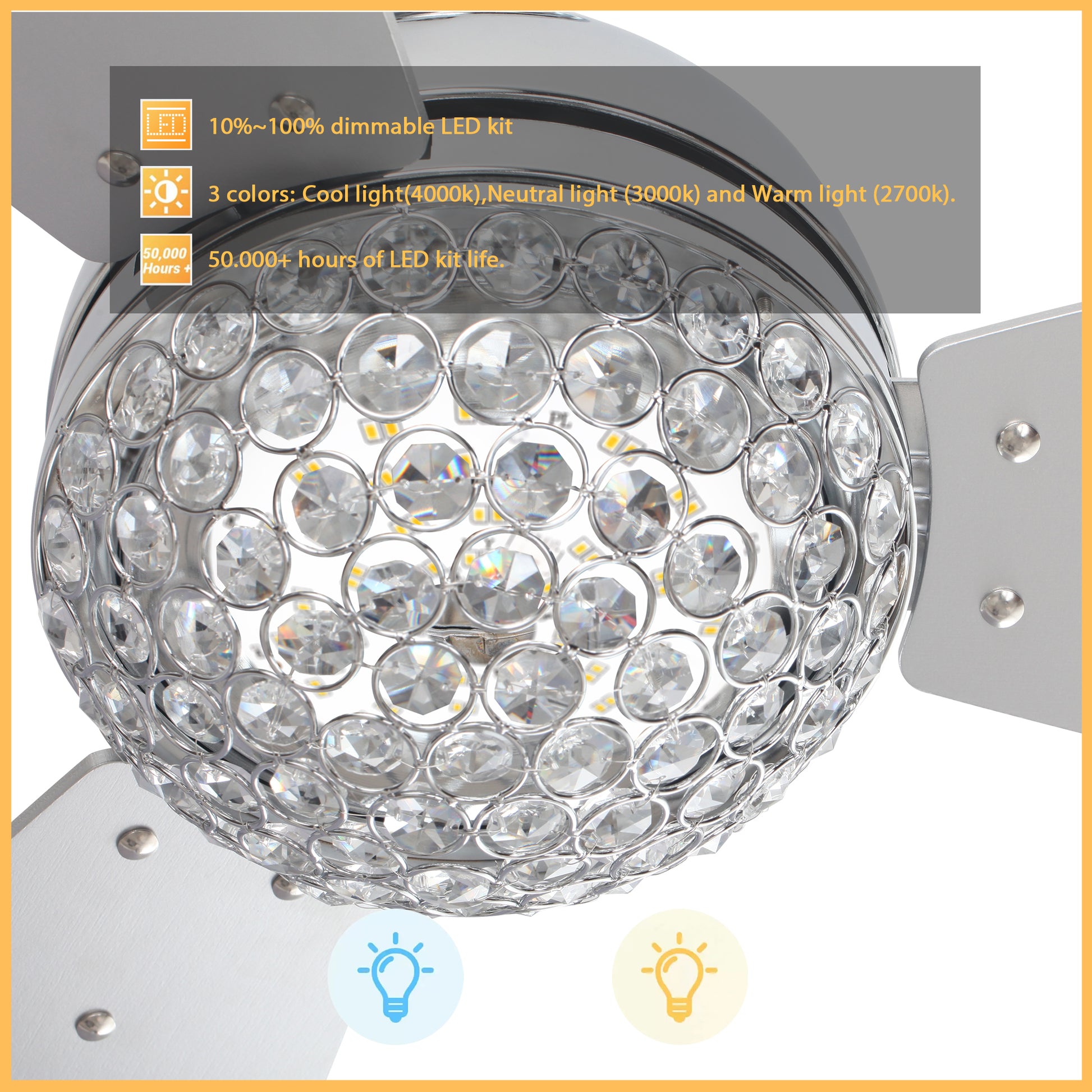 Coren 48 Inch 3-Blade Smart Ceiling Fan - Silver