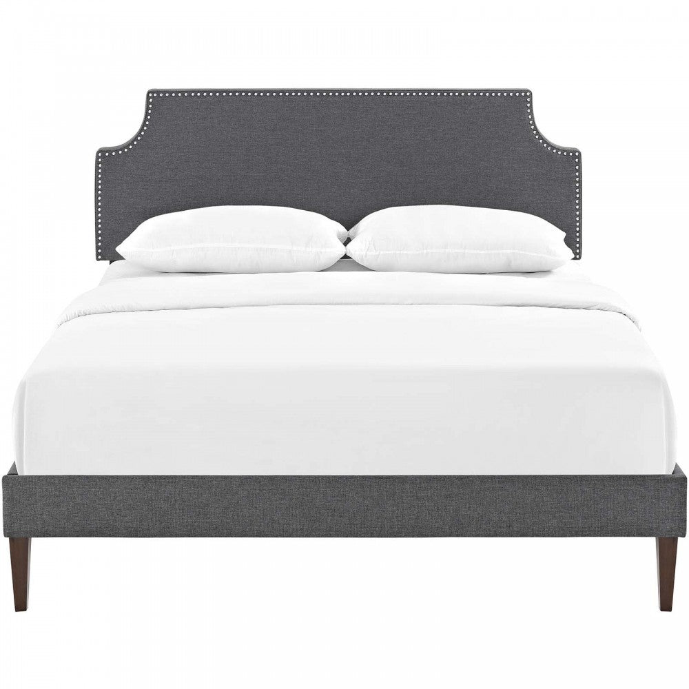 Corene Full Fabric Platform Bed with Squared Tapered Legs, Gray