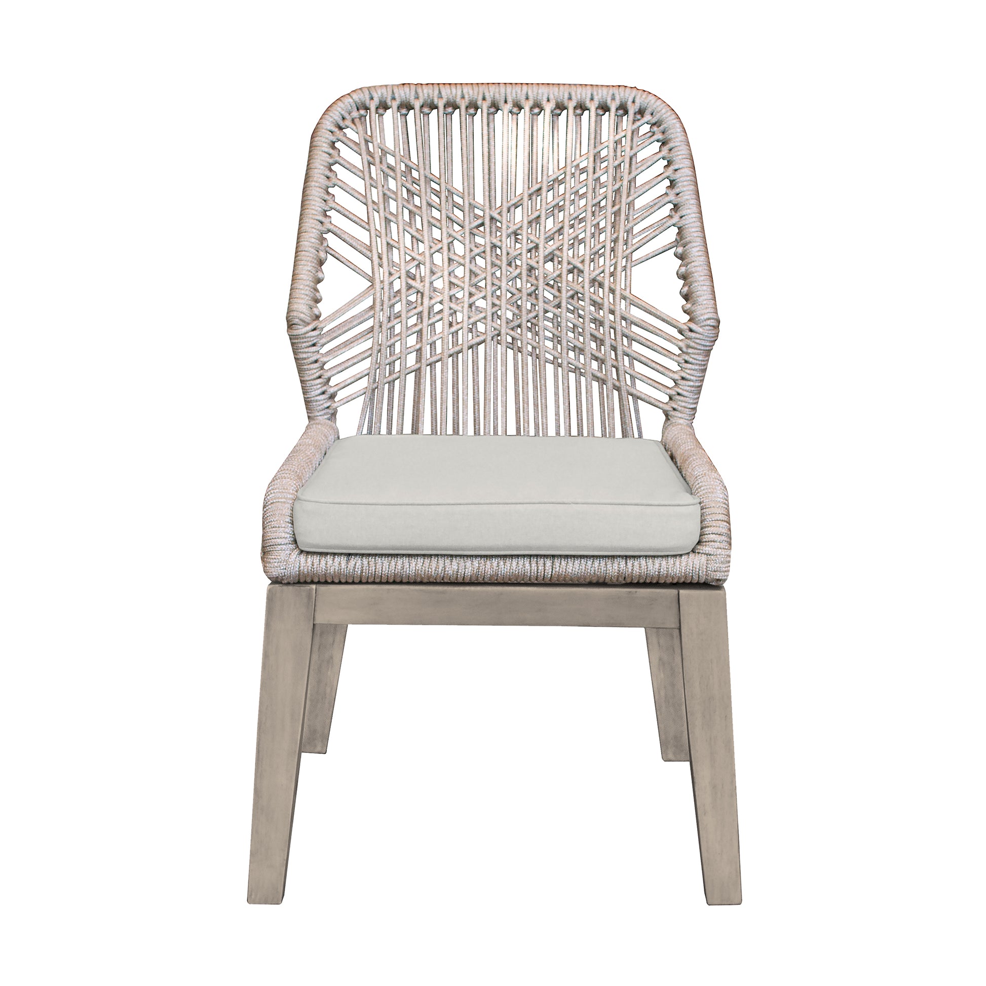 The Costa Outdoor Patio Dining Chairs in Grey Acacia Wood and Rope – set of 2 are the perfect outdoor addition for your home, apartment, or condo. The Costa patio chairs set of 2 are constructed from acacia wood and rope, these durable materials come together in harmony to create the perfect seat to dine, entertain, lounge, or read. The unique weave on the back of the outdoor dining chairs creates a soft yet modern aesthetic. The rope is rot-proof and resistant to mildew, mold, acids, and alkalis. Acacia is an extremely dense and durable wood that is hard to damage and is rich in natural oils that help prevent rot. It is also weather resistant and does not absorb much moisture which makes it a great wood for outdoor furniture. These beautiful outdoor patio chairs are treated to be used outside and beautiful enough to be used indoors. The grey cushions feature a convenient zipper closure which makes the removal and cleaning of the cushion covers a breeze. The polyester upholstery on these outdoor patio chairs is not permeated easily by water. Secondly, polyester resists the types of molds and mildews that will take root in fabrics made of natural fibers.