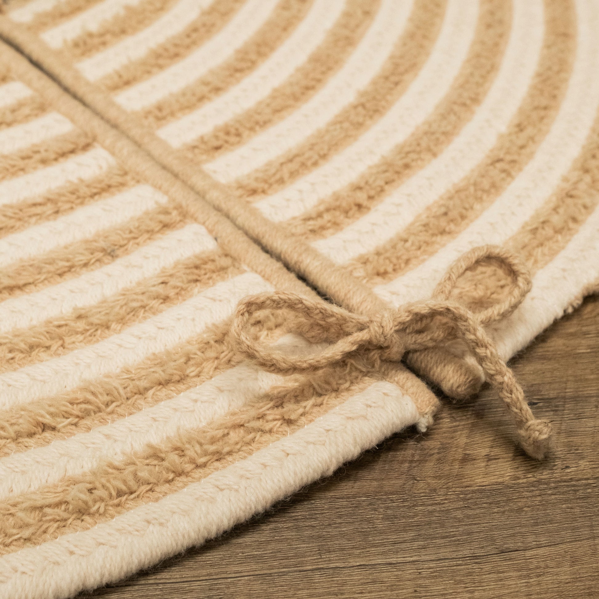 This striped wool tree skirt gives your holiday home the ultimate cozy update. Features a tonel soft shag stripe design and two braided ties to secure in place.