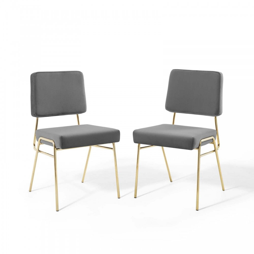 Craft Dining Side Chair Performance Velvet Set of 2, Gold Gray
