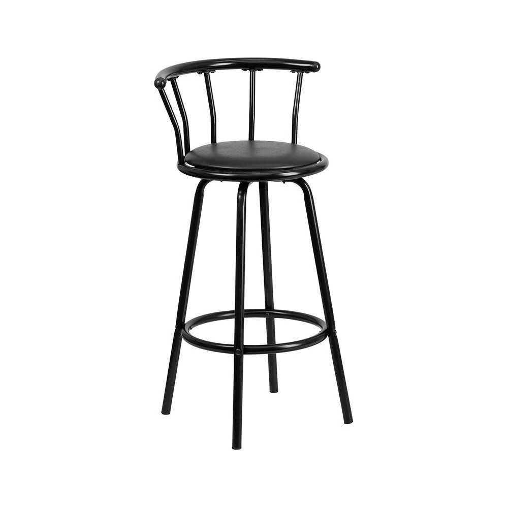 Clean lines and elegant simplicity are the hallmarks of this crown back black metal barstool featuring a black vinyl upholstered swivel seat. This sophisticated yet comfortable metal stool is perfect for casual everyday use as well as small gatherings in the kitchen, dining room or bar area and will add an inviting atmosphere to your space. Meanwhile, floor protector glides ensure that your flooring is free from scratching and other damage while making it easy to slide and transport the chair. A full 360 degree swivel, crown back and footrest ring provides comfort and ease. [YB-Y-J909-KD-GG]