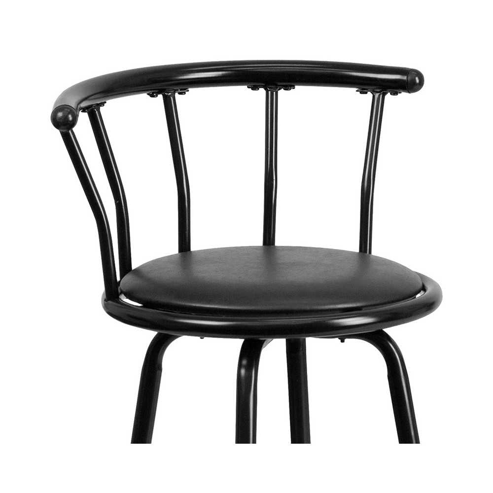 Crown Back Black Metal Barstool with Black Vinyl Swivel Seat