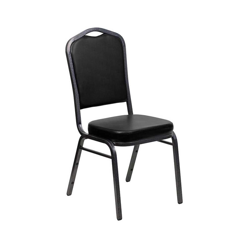 Crown Back Stacking Banquet Chair in Black Vinyl - Silver Vein Frame