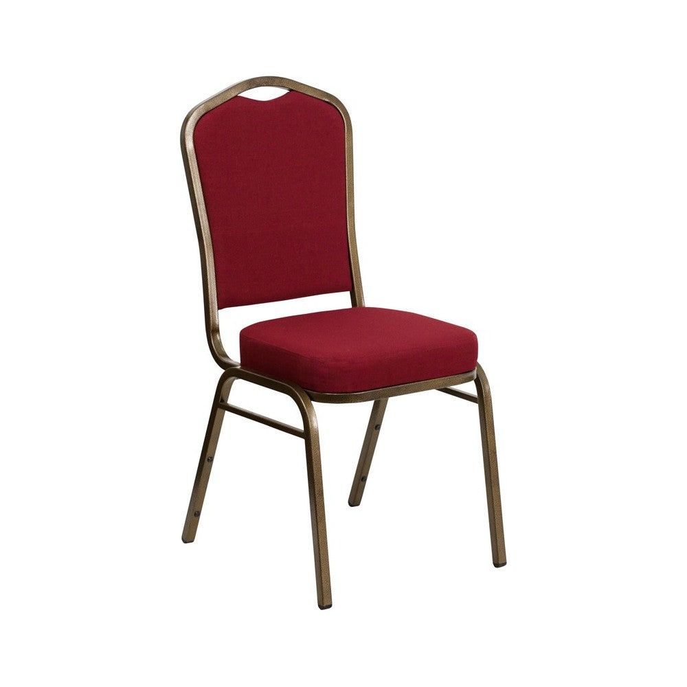 Crown Back Stacking Banquet Chair in Burgundy Fabric - Gold Vein Frame