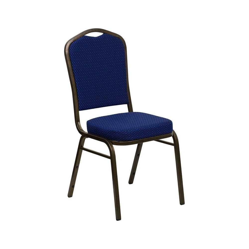 Crown Back Stacking Banquet Chair in Navy Blue Patterned Fabric - Gold Vein Frame