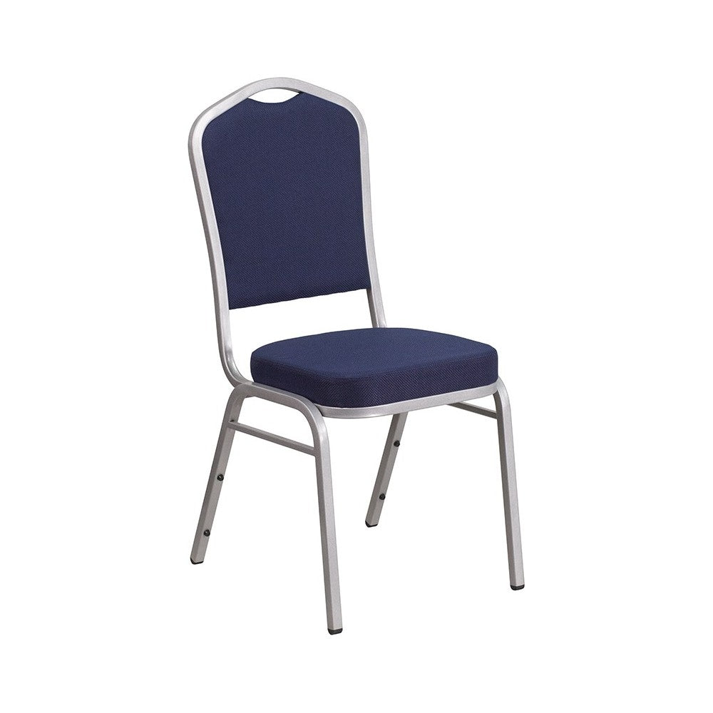 Crown Back Stacking Banquet Chair in Navy Fabric - Silver Frame