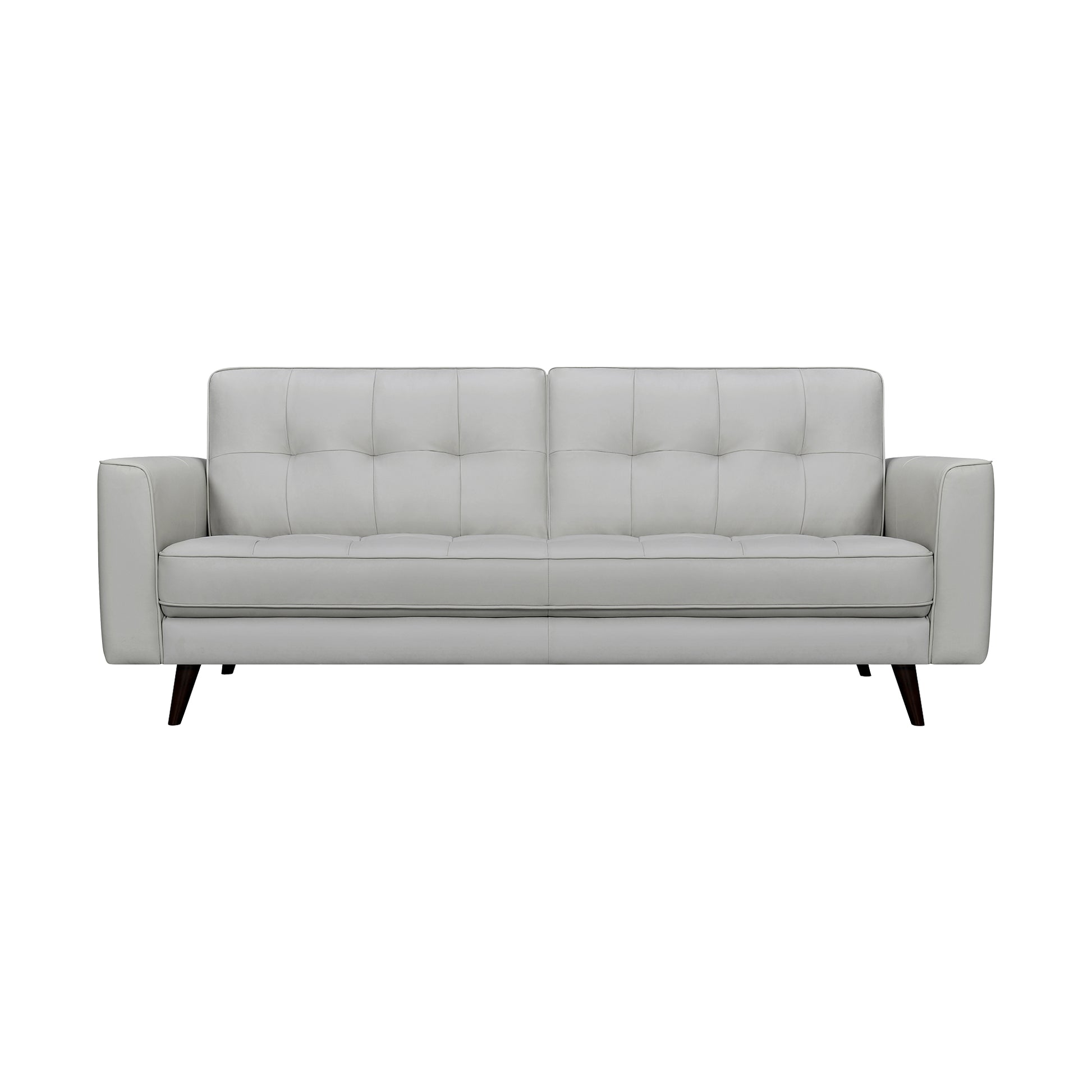 Daeson 86" Mid-Century Modern Dove Gray Genuine Leather Square Arm Sofa