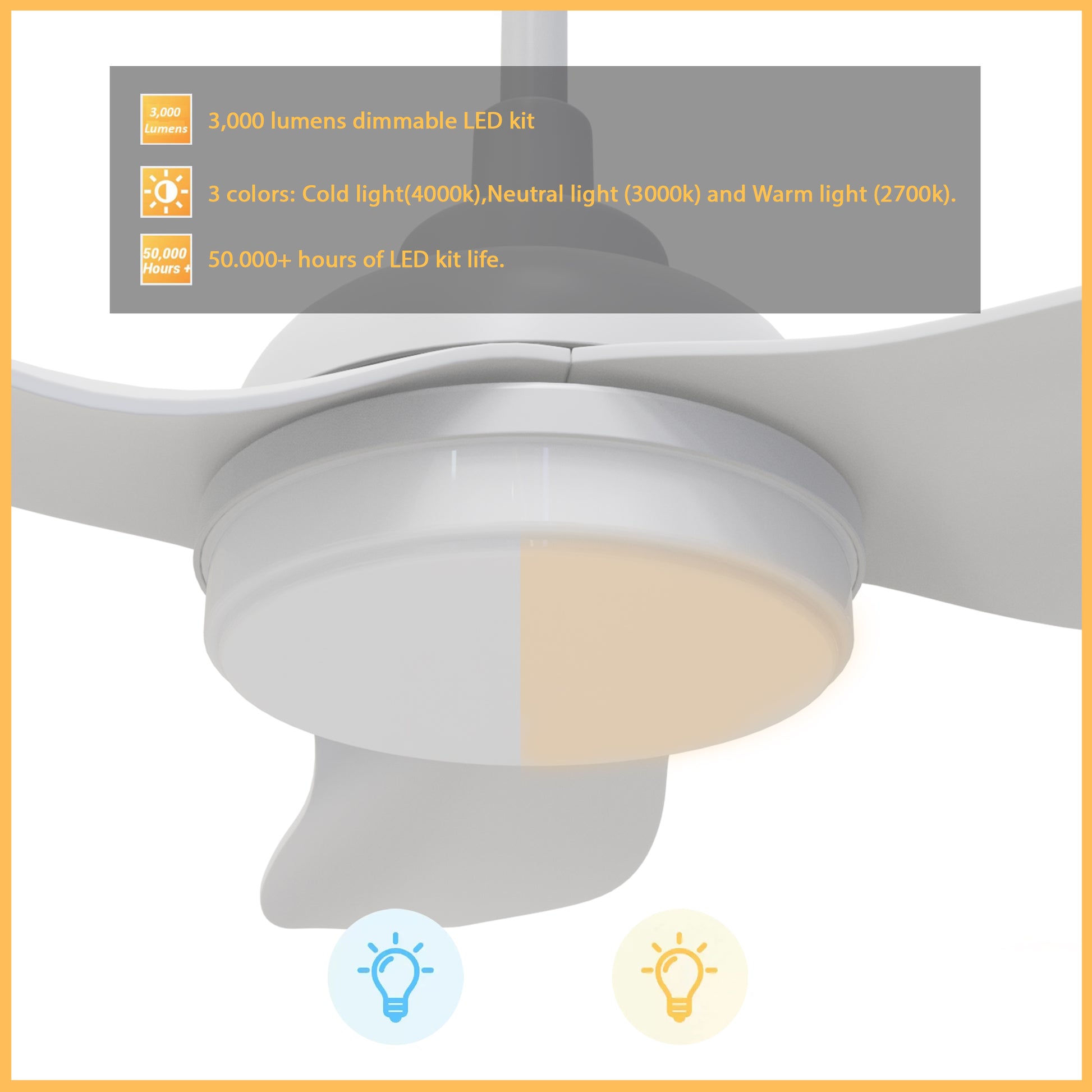Daffodil 45 Inch 3-Blade Smart Ceiling Fan - White