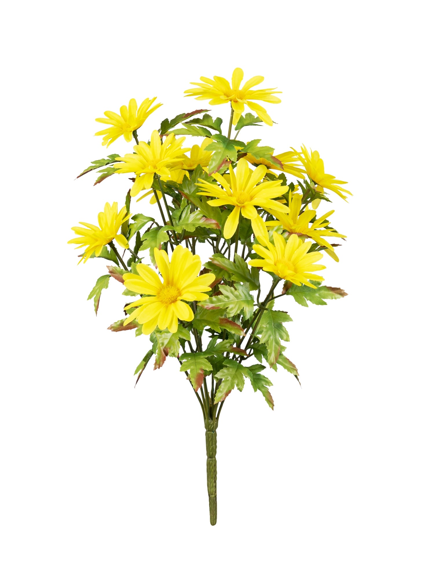 Add a pop of natural color to your home with these beautiful yellow daisies. Featuring two pieces, this set's daisy flowers paired with the assorted foliage accents makes this piece the perfect additon to your home decor. The quality polyester flowers and leaves are sure to last for seasons to come. Display the piece in a vase or decorative container to complete the look.