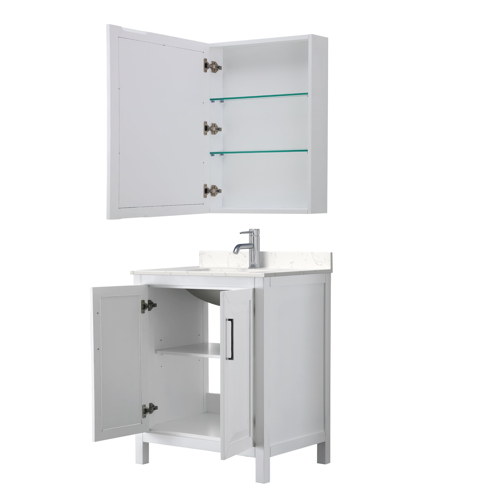 Daria 30" Single Vanity in White, Carrara Cultured Marble Top, Medicine Cabinet
