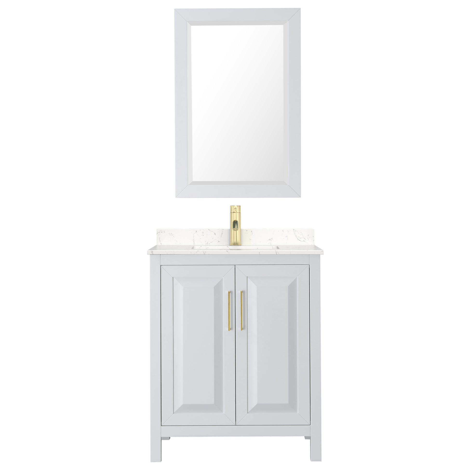 Daria 30" White Single Vanity, Carrara Marble Top, 24" Mirror, Brushed Gold Trim