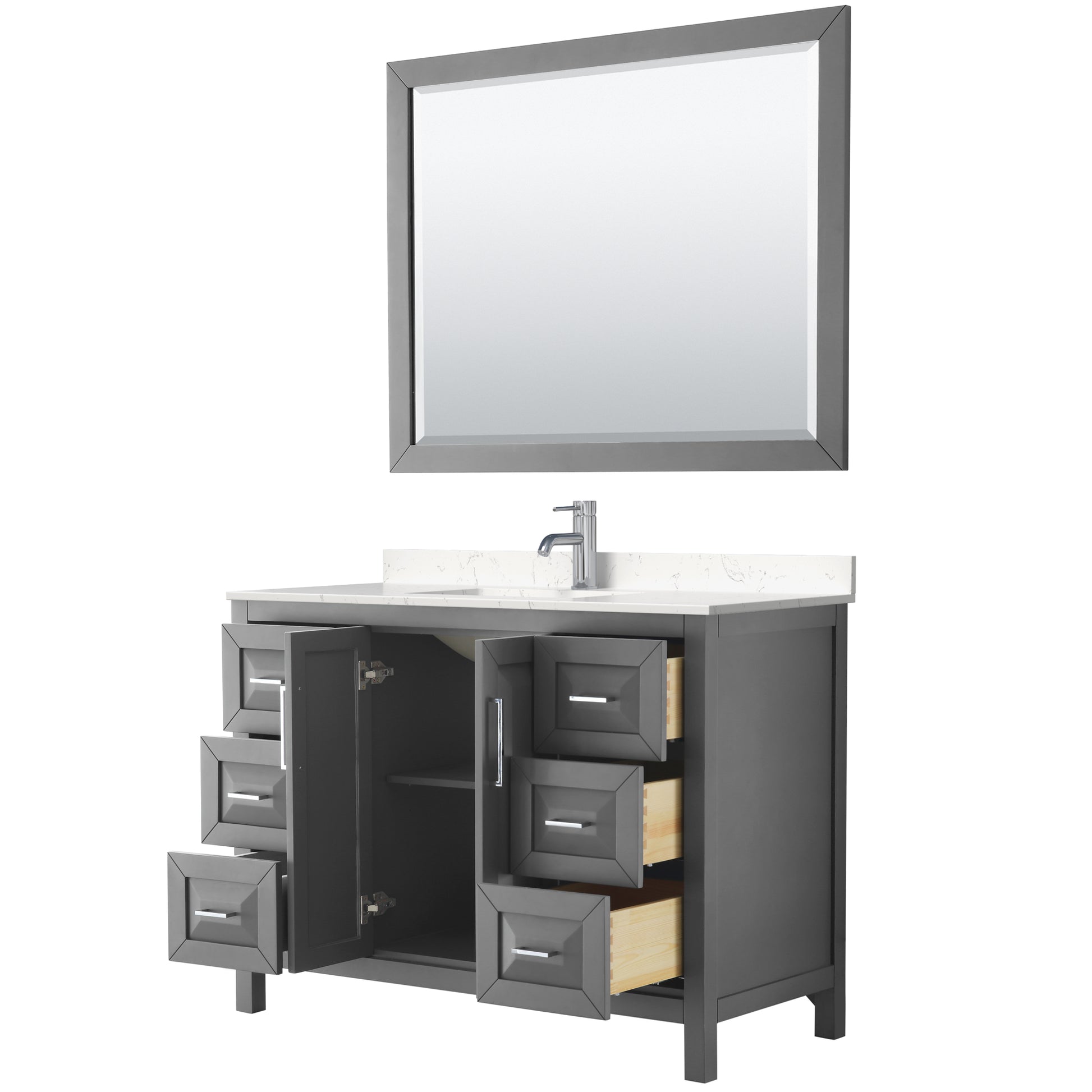 Daria 48" Single Vanity in Dark Gray, Carrara Cultured Marble Top, 46" Mirror