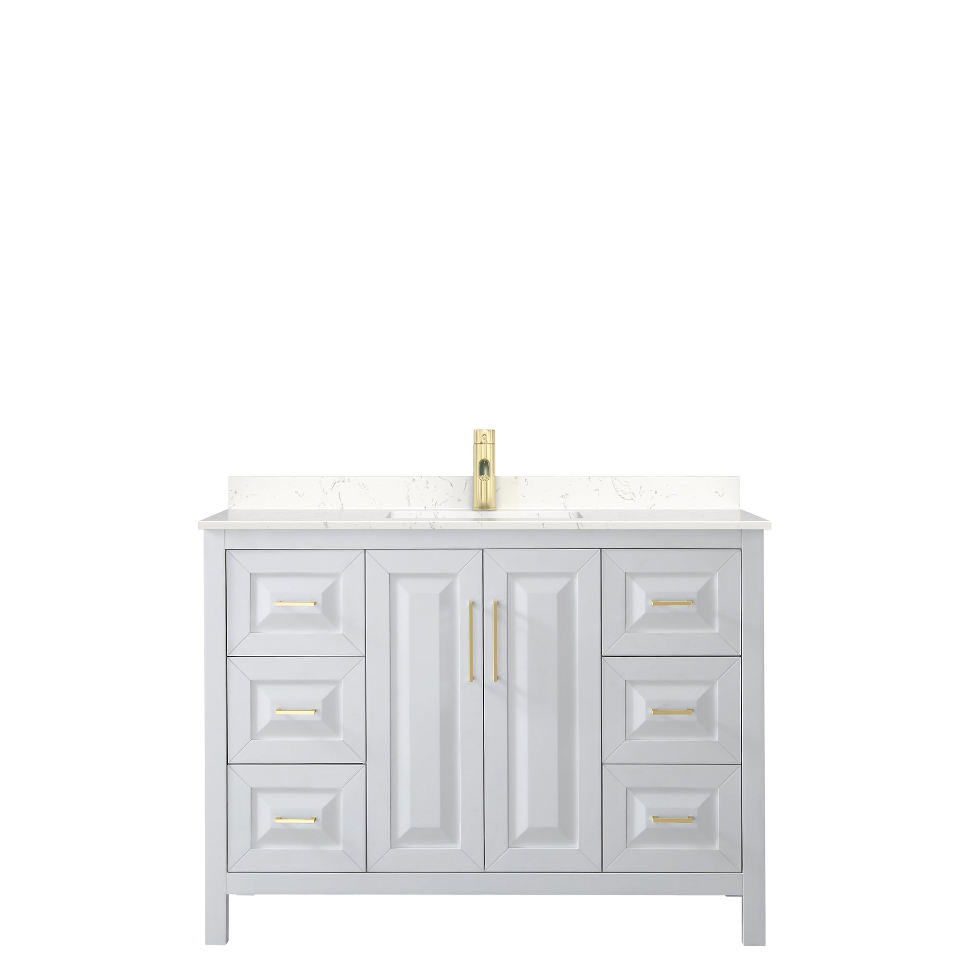 Daria 48" Single Vanity in White, Carrara Cultured Marble Top, Gold Trim